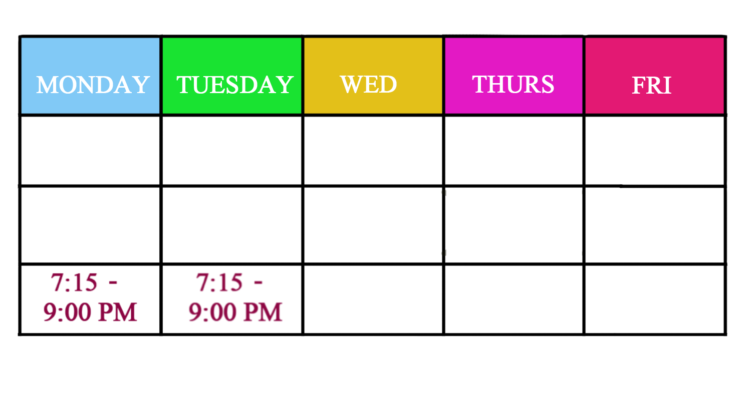 have two time slots, Monday and Tuesday 7:15 pm.